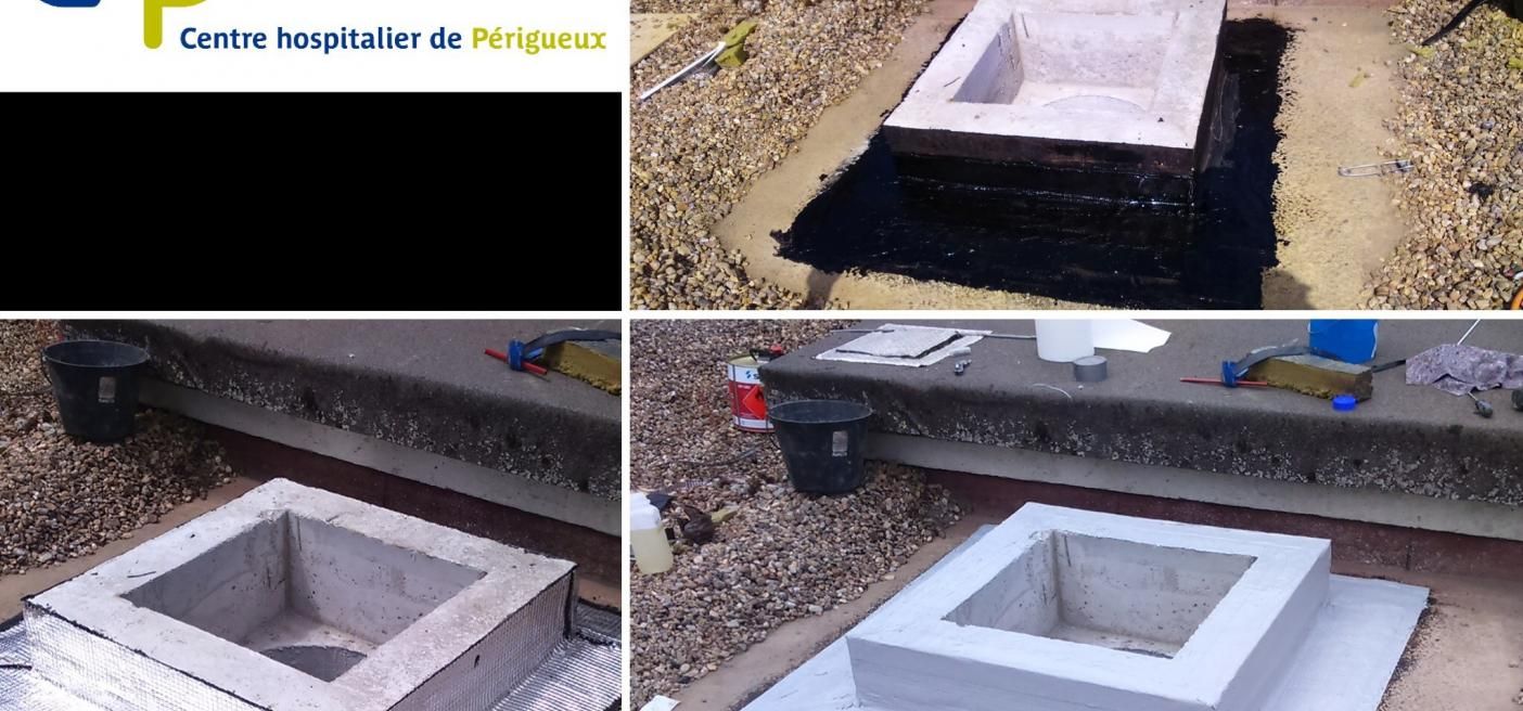 Nous sommes intervenus pour le compte du Centre Hospitalier de Périgueux pour un nettoyage des chéneaux plus démontage de 2 dômes de lanterneaux pour vérification des joints (problème fuites).