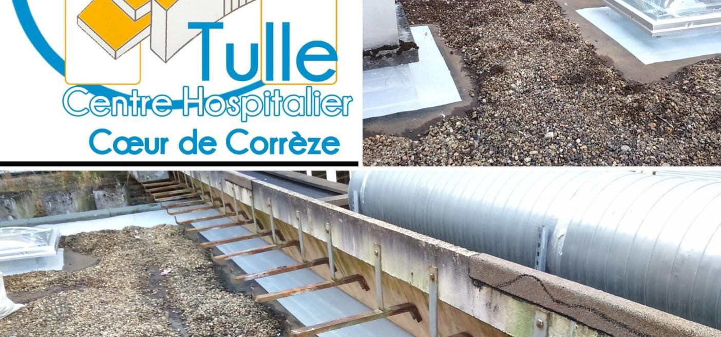 Nous sommes intervenus pour le compte du Centre Hospitalier de Tulle pour des réparations soudures de relevés bitume.