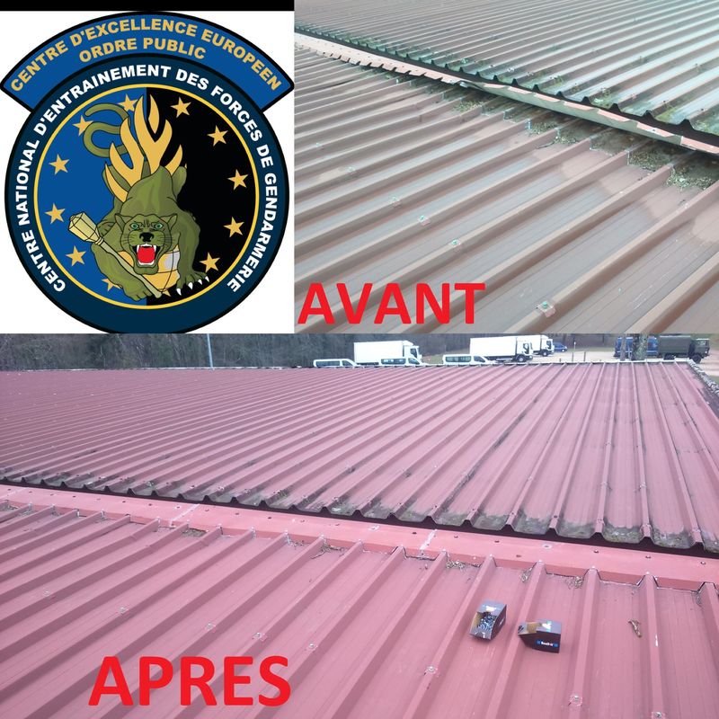 Nous sommes intervenus pour le compte du centre national des forces de gendarmerie (CNTFE) pour diverses réparations et nettoyage des chêneaux et rive à Saint Astier.