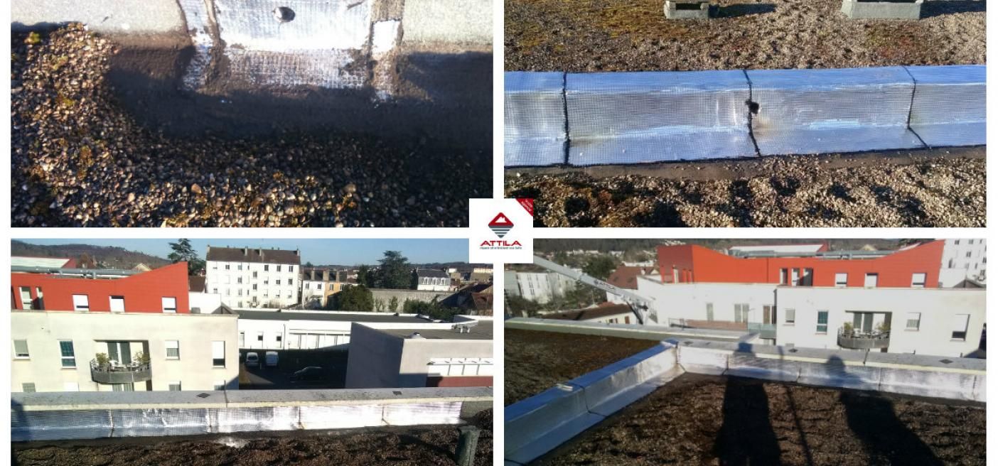 Ici, il s’agit d’une reprise sur des relevés d’acrotère pour conserver une bonne étanchéité du bâtiment, et ainsi éviter les désagréments comme les infiltrations et les fuites.