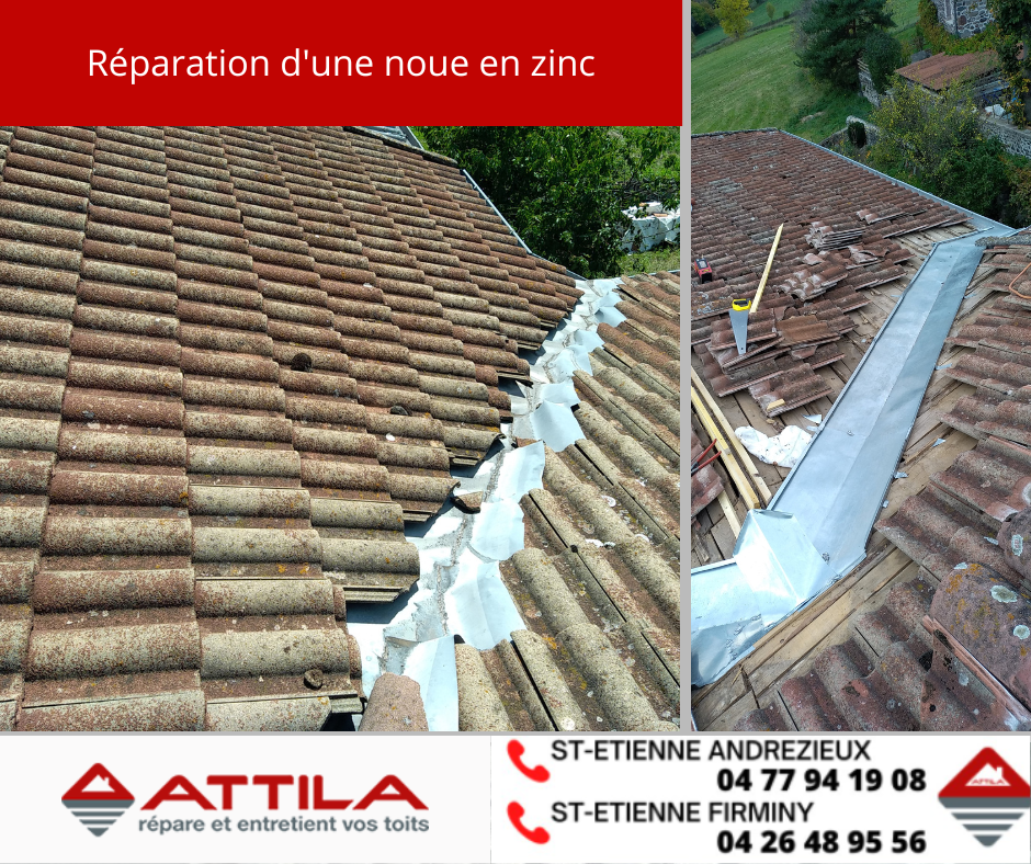 La noue est un élément creux, en angle, dont le rôle est de collecter l’eau de pluie. Bien que très résistant, le zinc est un élément qui subit les aléas du temps.