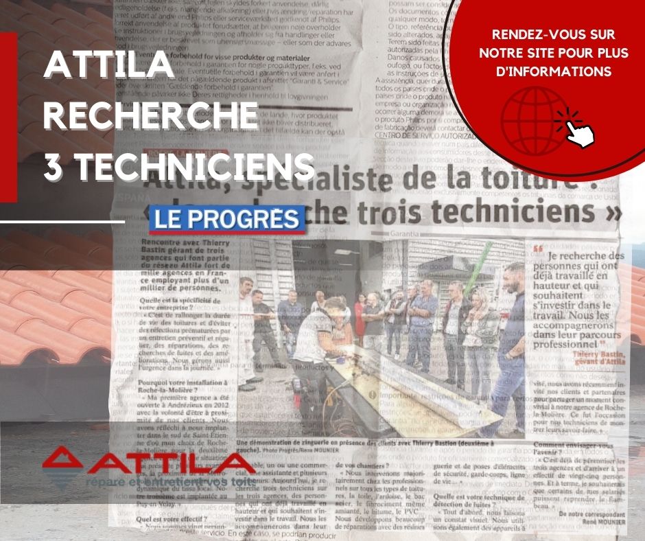 Nous tenons à remercier le journal Le Progrès, et spécialement René Mounier, pour cet article paru le 30 septembre. Il présente les trois agences Attila Saint-Etienne mais également notre cœur de métier, l’entretien, la protection et l’optimisation de la durée de vie des toitures.