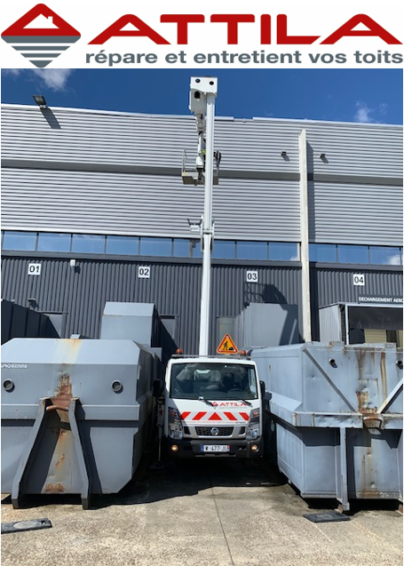 L’entreprise L’Oréal a fait appel aux services d’Attila Saint-Quentin pour un remplacement de couvertines endommagés suite aux intempéries. Les couvertines participent à l’étanchéité du toit. Pour que l’intervention de réparation s’opère en toute sécurité nous avons décidé d’utiliser le camion nacelle. Malgré l’étroitesse d’accès, notre camion nacelle a su trouver sa place pour nous permettre la réparation des couvertines .