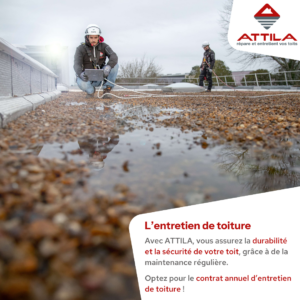 ATTILA est le 1er réseau national spécialisé dans la réparation, l’entretien et la maintenance de tous les types de toits, qu’ils soient industriels, traditionnels, en terrasse ou amiantés.