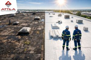 ATTILA est le 1er réseau national spécialisé dans la réparation, l’entretien et la maintenance de tous les types de toits, qu’ils soient industriels, traditionnels, en terrasse ou amiantés.
