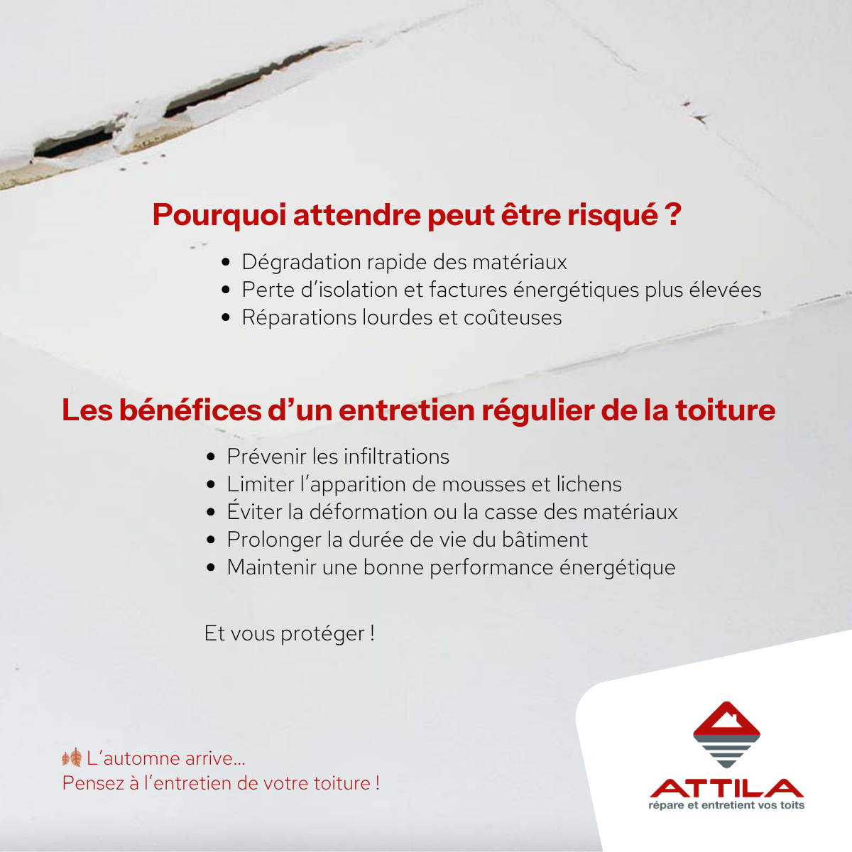 Astuce Attila : Entretenir sa toiture régulièrement permet de prévenir les problèmes et de protéger votre investissement.