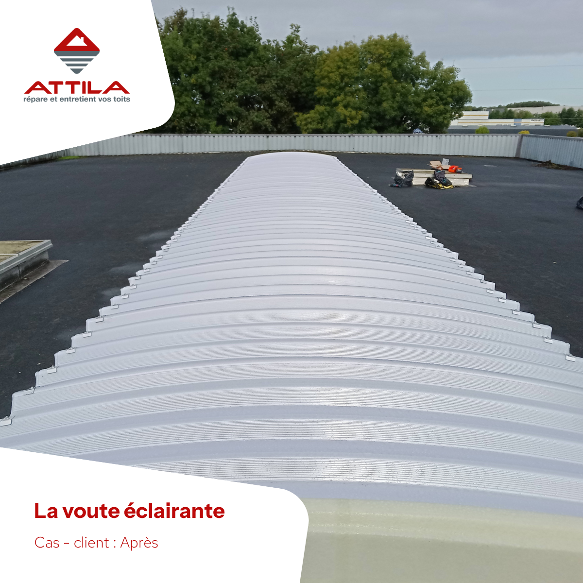 Chez Attila Nantes Ouest, nous accompagnons nos clients sur la maintenance des voûtes éclairantes de leurs bâtiments afin de conserver des espaces lumineux et agréables.