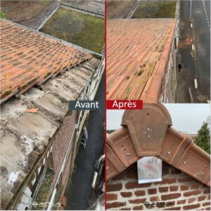 Les Techniciens Toitures d’Attila ont donc réparé les éléments de charpente et changé les tuiles mécaniques endommagées. De nouvelles rives ont été posées pour garantir l’étanchéité de ce toit traditionnel en tuiles mécaniques.