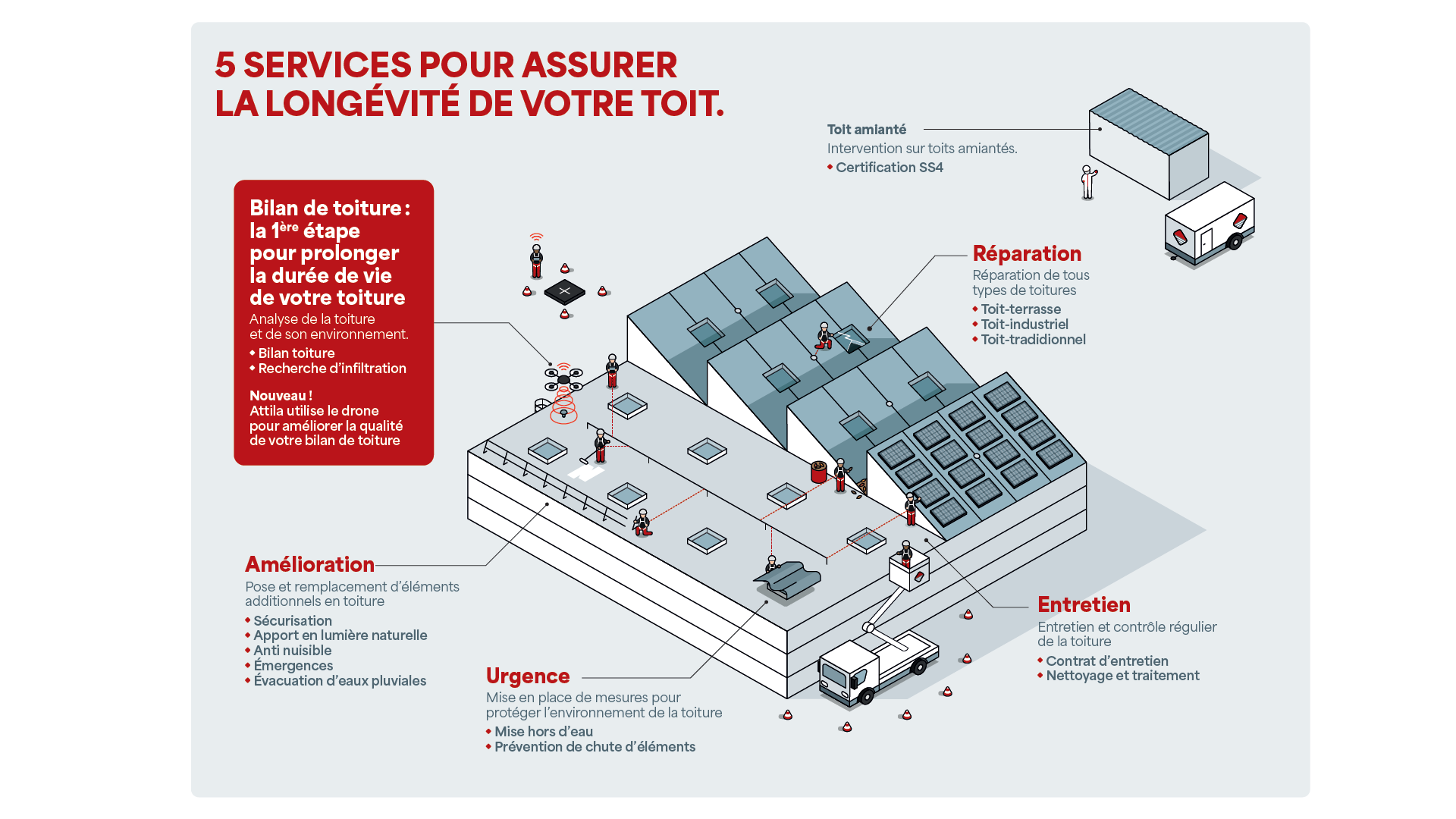 Le bilan de toiture ATTILA permet d’analyser l’ensemble de la toiture, quels que soient son usage et sa configuration.