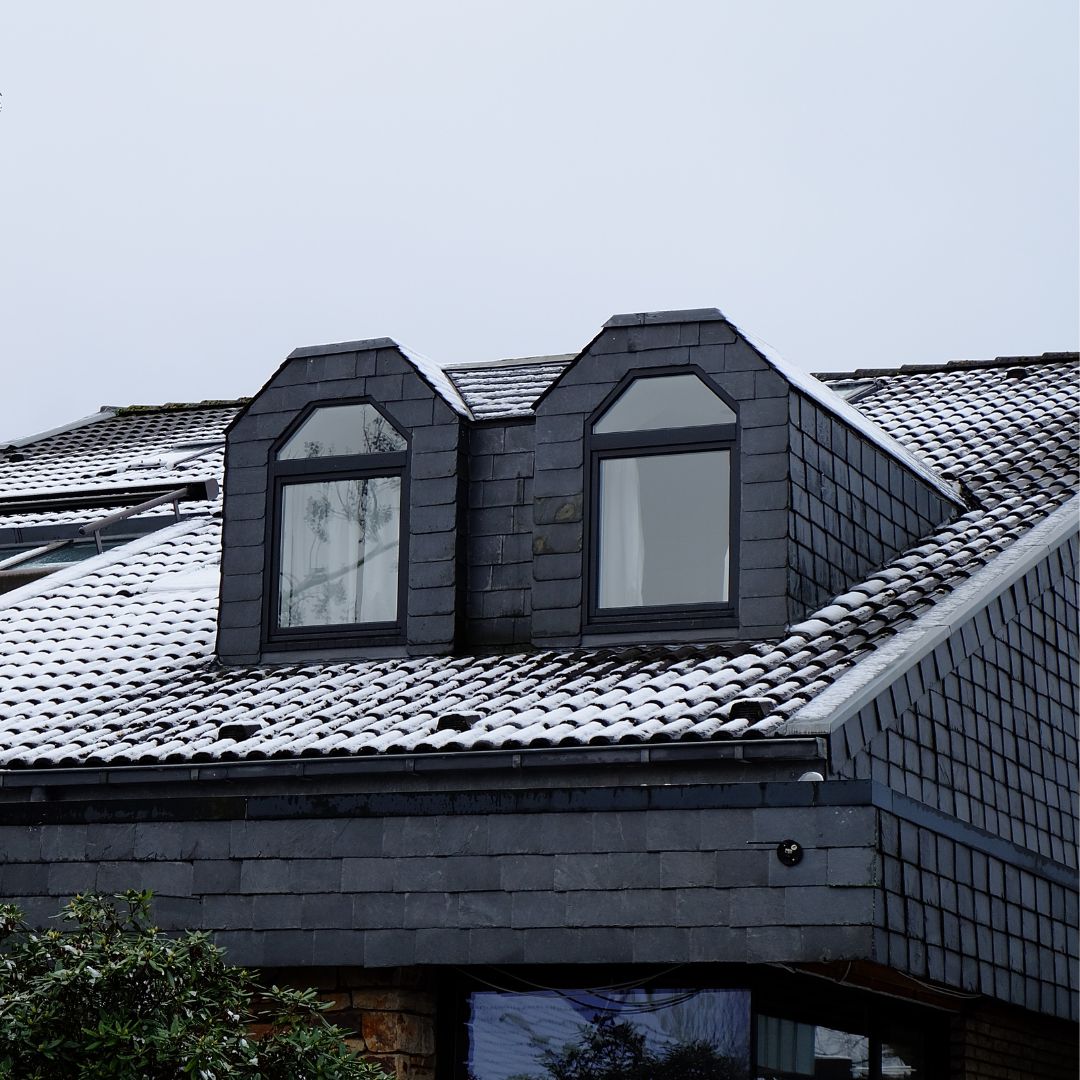 Lucarne reconnaissable à sa forme triangulaire sur le toit.